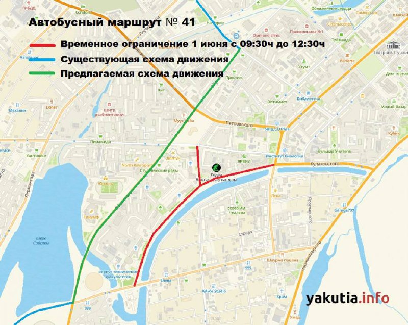 Окружная администрация Якутска информирует о временном перекрытии движения на улицах Якутска и схемах объезда в связи с проведением спортивного мероприятия «Зеленый марафон».