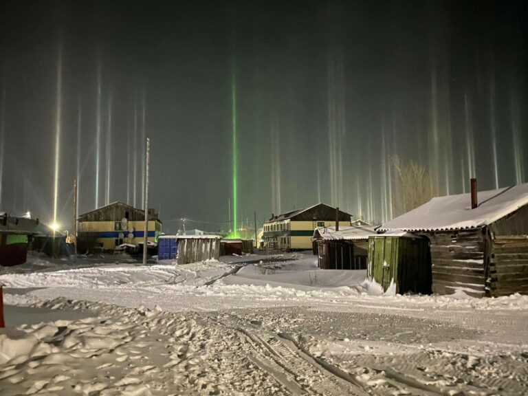 В Кобяйском улусе отфиксировали два необычных явления сразу — световые столбы и гало. Гиганткие небесные столбы сфотографировали и в с.Жиганск.