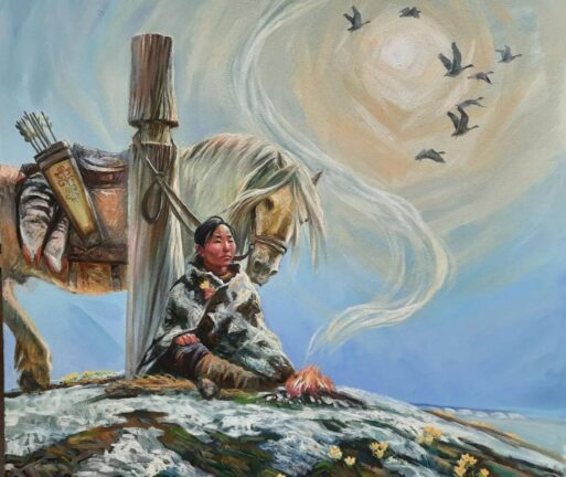 Оттон баай хара тыа иччитэ Баай Байанай: “Ох сааннан ойдоох бууру охторор, уоттаах саһылы ойуурга бултуур, хагдаҥ эһэни хатан үҥүүннэн үөлэр, илиитигэр тутуурдаах, көпсө сөгөлөөн сүгэһэрдээх, аартыгар айалаах, тумул сирдэргэ туһахтардаах, ойуур тыаҕа уоттаах, үгүс сиргэ үүтээннээх үтүө булчут буолар киһи төрөөтө, — диэн көх-нэм буолан, күлүмүрдүү үөрэн күөх элэмэс буурдарын көлүнэн уол оҕо төрөөбүт ыалыгар ыстаннарар.