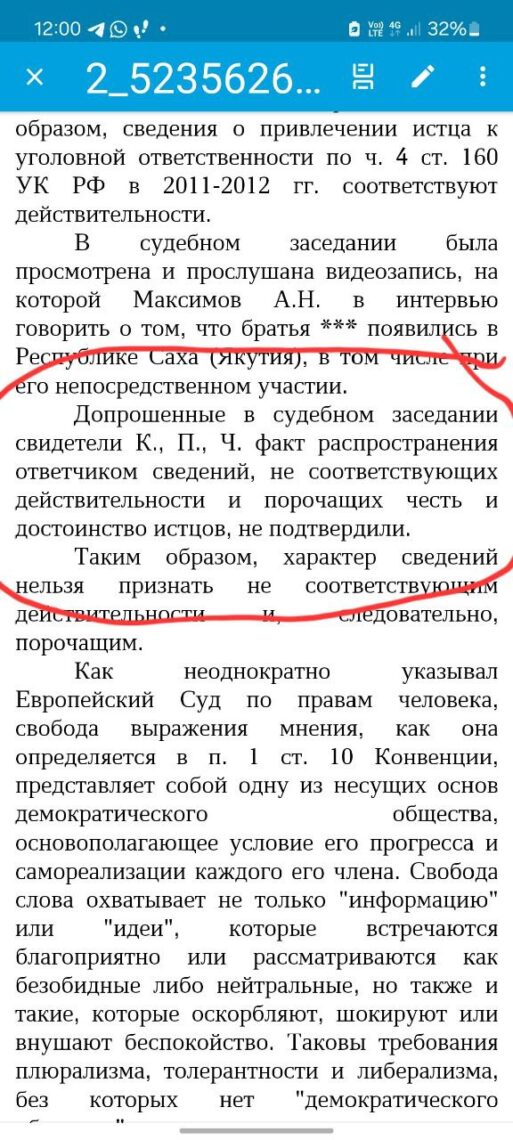 Афанасий Максимов: Все свидетели подтвердили под присягой что ответчик распространил несоответствующие действительности сведения. Но у судьи со слухом или еще с чем видать большие проблемы.