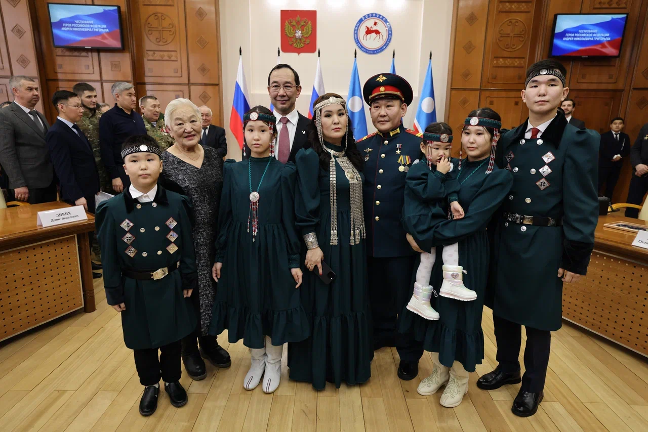 Андрей Григорьев стал десятым уроженцем Якутии, удостоенным звания Героя России за время специальной военной операции. Поддержать его на церемонии чествования пришли семья и близкие.