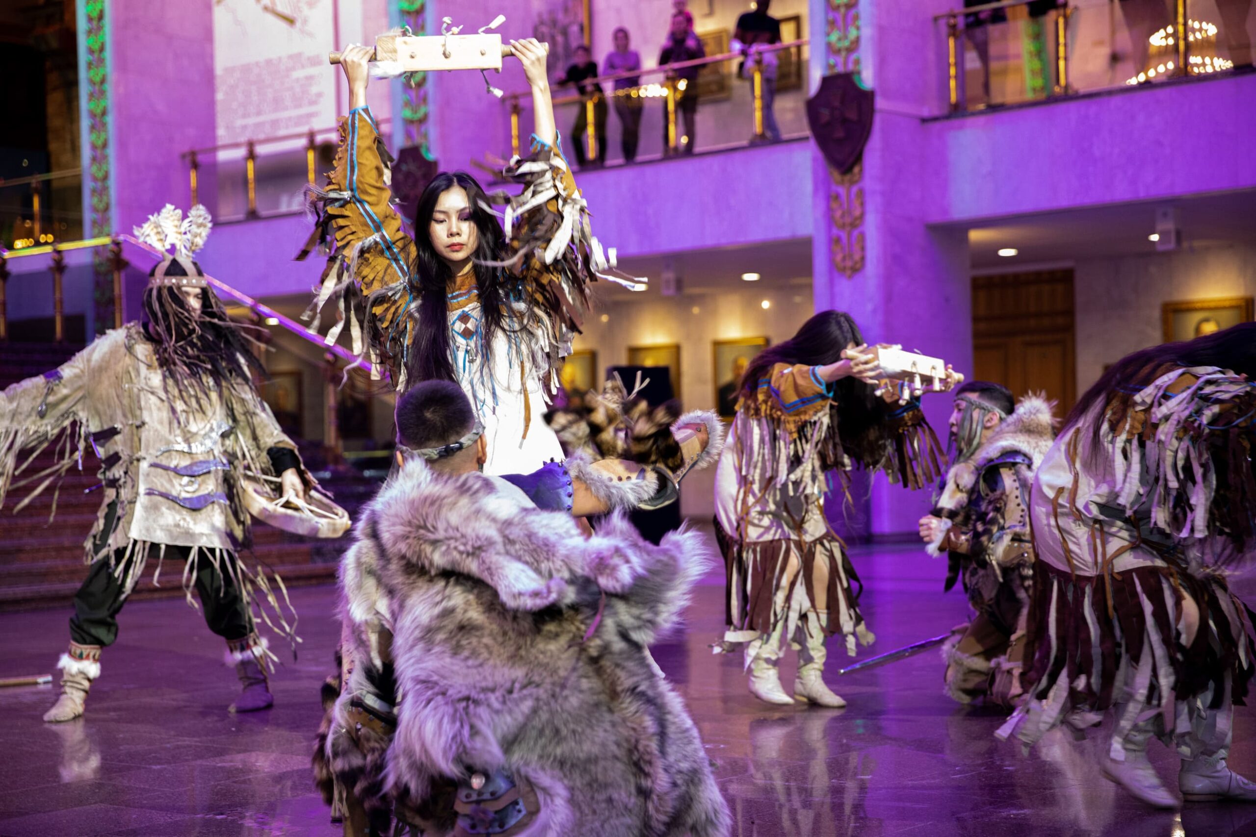 В Зале Полководцев перед посетителями Музея Победы выступили артистка классического театра народа Саха Анастасия Алексеева, хомусист-импровизатор из Якутии, лауреат первой степени и обладатель диплома международного общественного фонда «Туран Дунияси» Артур Семенов и народный ансамбль танца «Ситим» с танцами народов севера.