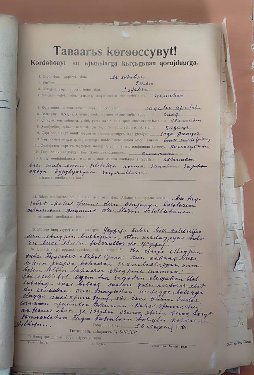 Чтобы положить конец спорам, была разработана «Анкета зрителя” в 1930 году, и собрано 153 анкеты и.о. директором Якутского нац. театра Д.К. Сивцевым, будущим Суорун Омоллоном.