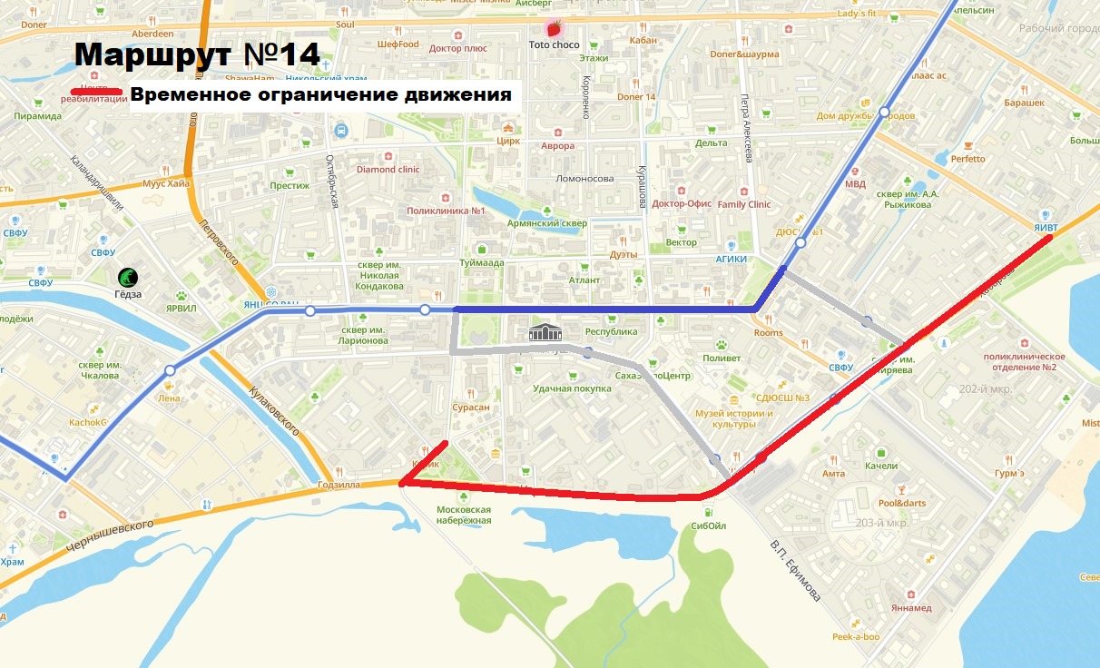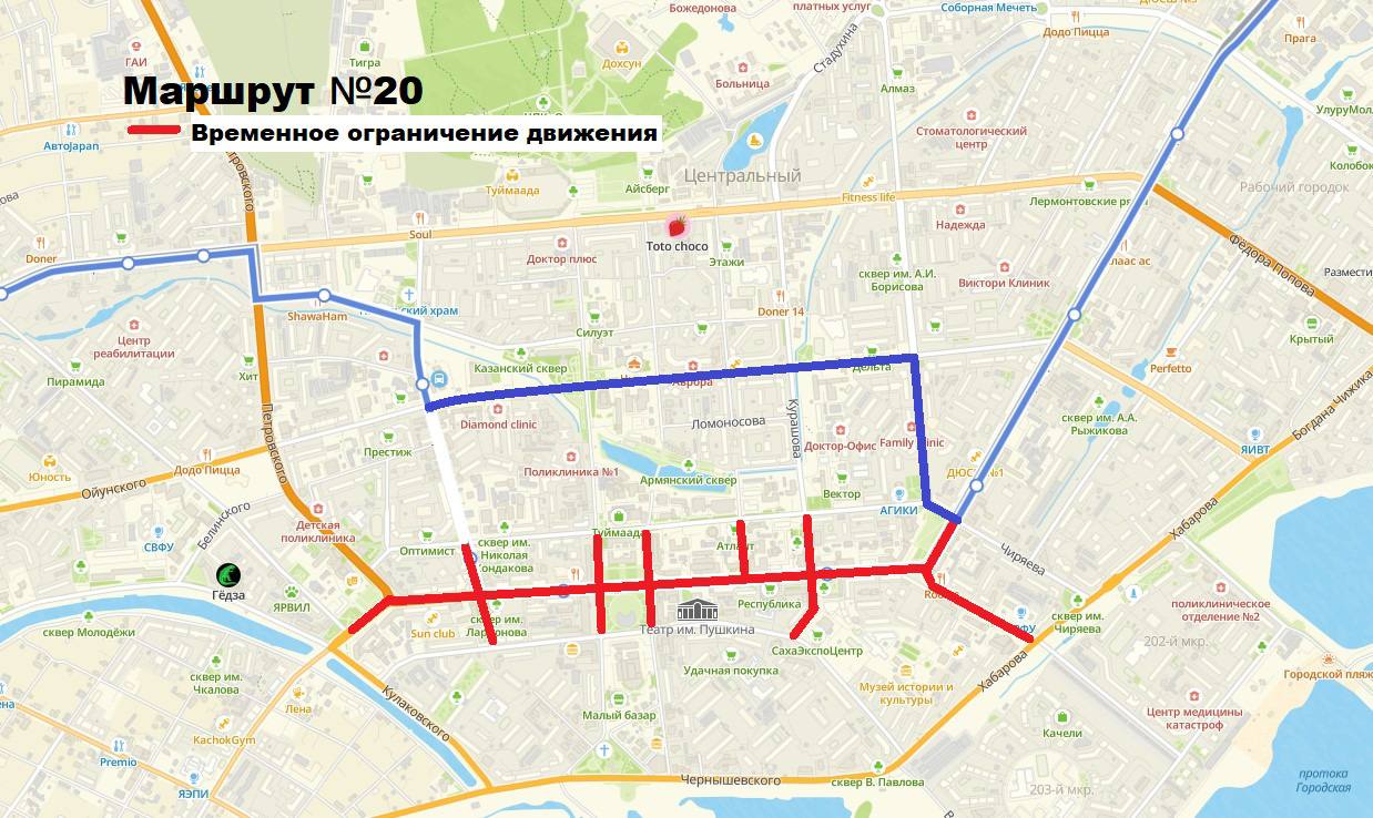 Окружная администрация города Якутска информирует, что 6 мая 2025 года с 11:30 до 14:00 часов движение транспорта будет полностью перекрыто на следующих участках: