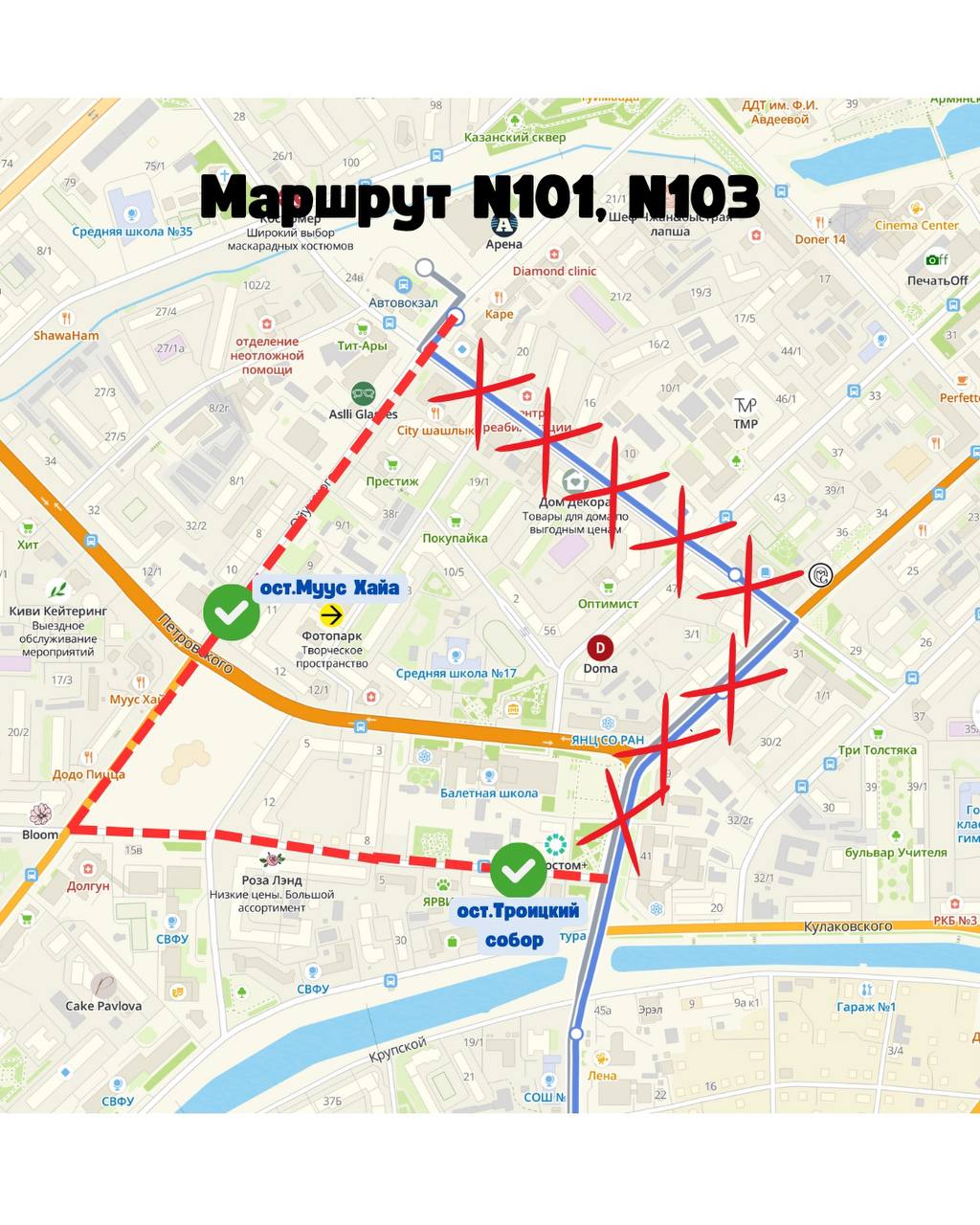 ▪️ Октябрьская, Кирова, Аммосова, Курашова (от Орджоникидзе до Ярославского)