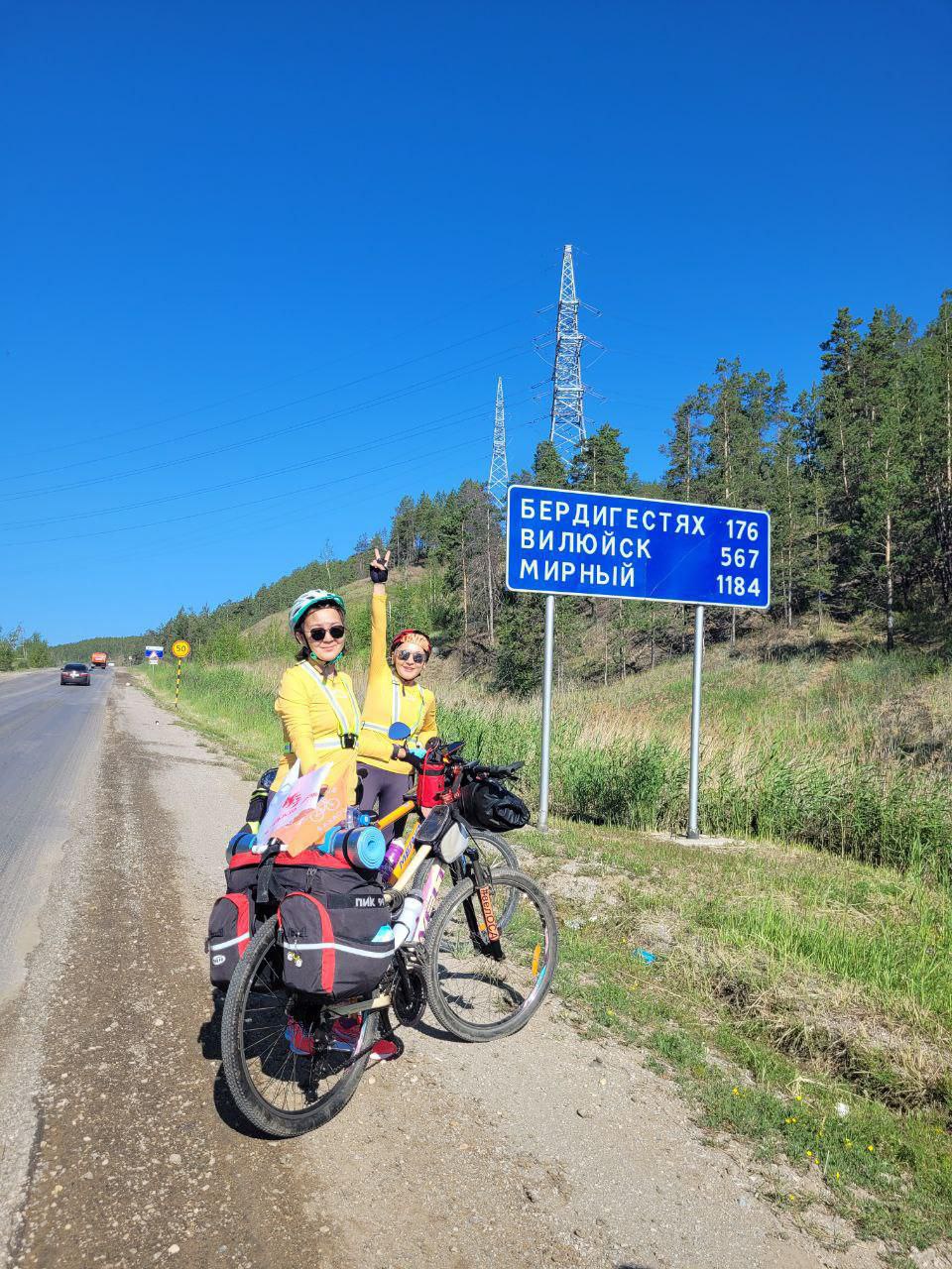 На трассе Вилюй в эти дни проходит велопробег двух отважных девушек по маршруту Якутск — Мирный.