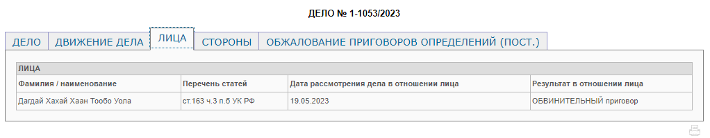 Отметим, также как дело Сусанны Рожиной, дело Дагдай Хахай Хаан Тообо Уола (Льва Игнатьева) было рассмотрено судом в особом порядке, и он получил условный срок и минимальный штраф.
