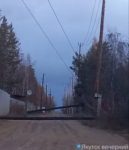 Дачи на Вилюйском тракте, 15 км остались без света, там упали опоры электропередач, сообщает телеграмм-канал «Якутск вечерний».