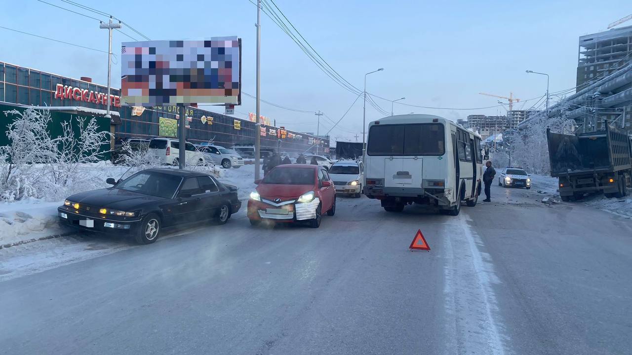 Подробности ДТП сообщил тгк ПРО автобус: на 7-м километре Вилюйского тракта произошло дорожно-транспортное происшествие с участием маршрутного автобуса №6.