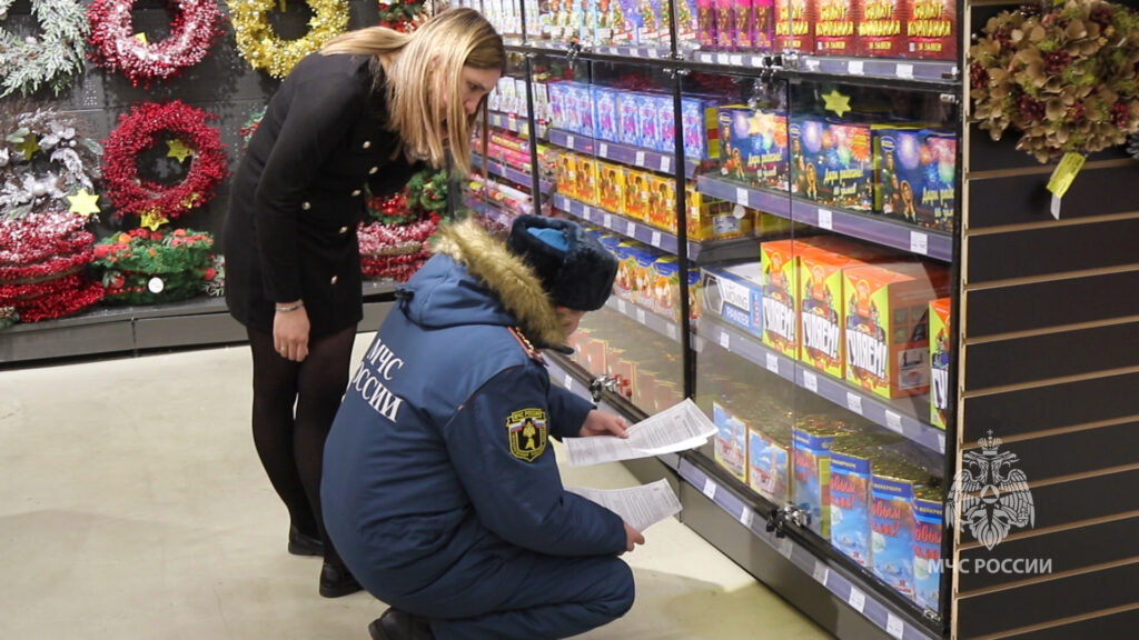 Специалисты отдела надзорной деятельности и профилактической работы осматривают помещение, оценивают условия хранения пиротехники, проверяют сертификаты на продукцию, наличие огнетушителей, автоматических систем противопожарной защиты.