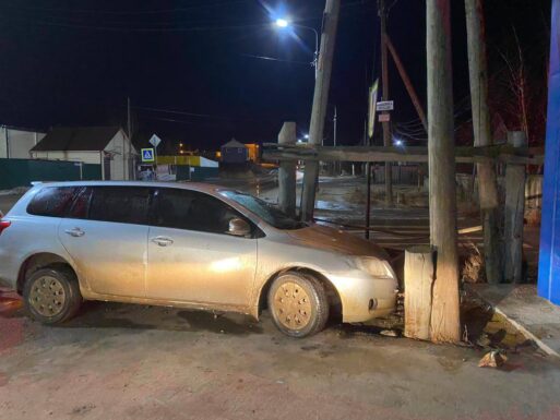 В Якутске нетрезвый водитель совершил наезд на опору уличного освещения