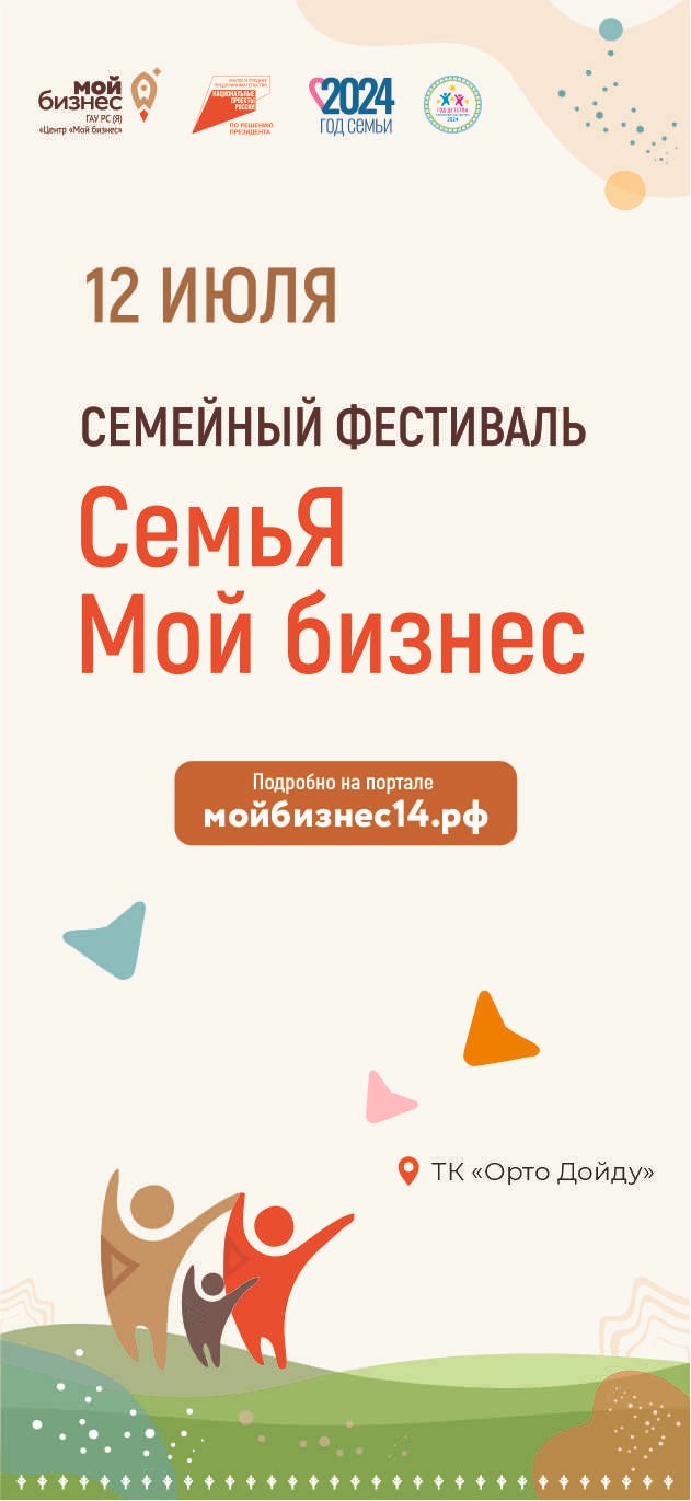 В самый разгар лета приглашаем всех предпринимателей, участников образовательных программ и партнеров ГАУ РС(Я) «Центр «Мой бизнес» с их семьями на семейный фестиваль «СемьЯ Мой бизнес», посвященный году Семьи, который состоится 12 июля 2024 г. Местом встречи станет всем известный экопарк-отель «Орто Дойду».