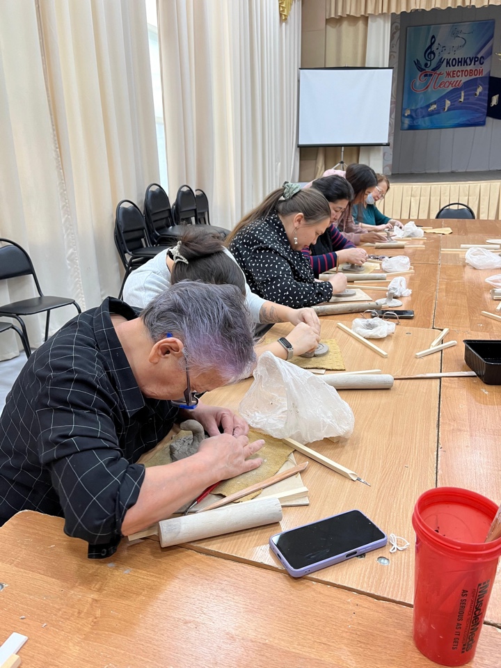 В первый день участники научились создавать тёплый и уютный пояс «Баачча». Они освоили искусство выкройки, украсили ткань уникальными рисунками и сшили настоящее произведение искусства своими руками.