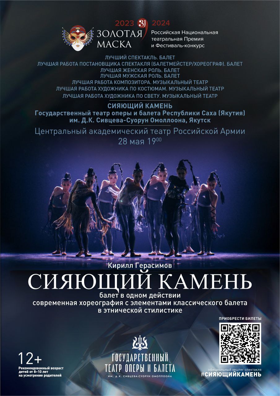 В эти дни у Государственного театра оперы и балета Республики Саха (Якутия) два знаменательных событийя. Первое — это показ в рамках Российской Национальной театральной премии «Золотая маска» 28 мая на сцене Театра Российской Армии этнобалет «Сияющий камень». Второе — приглашение открыть XVI Международный фестиваль балета «В честь Екатерины Максимовой» в Челябинском Государственном Академическом театре оперы и балета им. М.И. Глинки постановками «Геометрия движения» и «Сияющий камень».