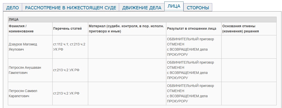 Дело о перестрелке на стройке: обвинительный приговор братьям Петросян и Дзаурову отменен?