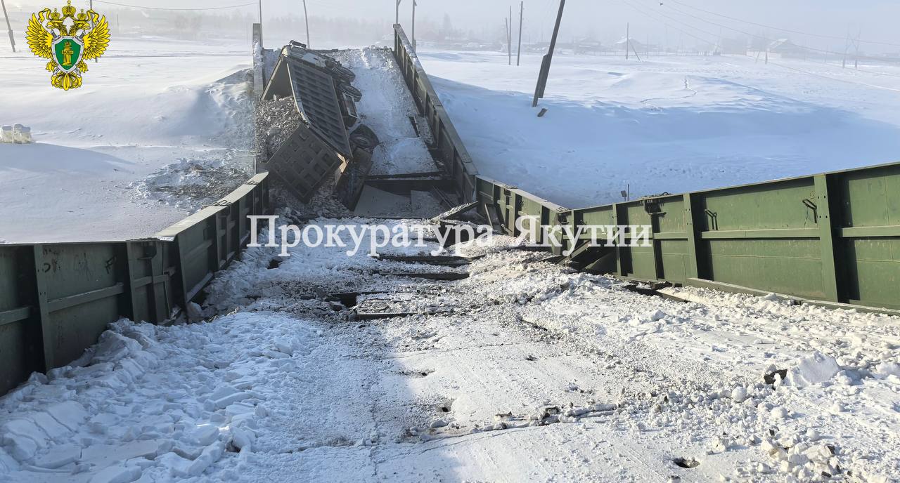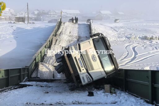 В Таттинском районе Якутии большегрузный транспорт разрушил мост на автомобильной дороге Черкех – Дая-Амгата. По предварительным данным прокуратуры, водитель грузовика превысил предельный вес, разрешенный при проезде по мостовому переходу.
