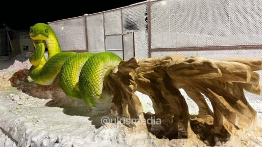 Эффектного змея сотворил из снега колымский мастер