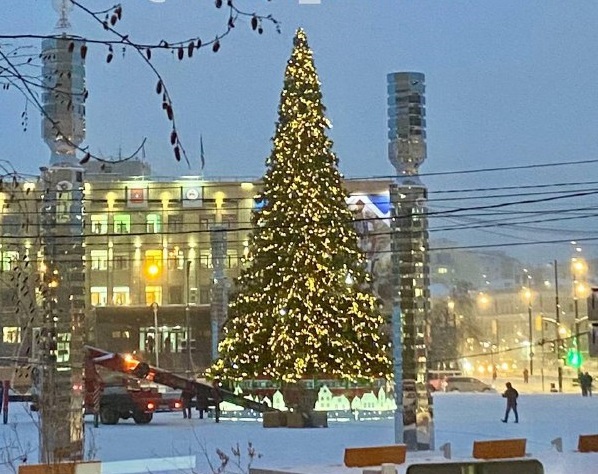В якутском Телеграме ежедневно следят за украшением новогодней елочки на главной площади Якутска.