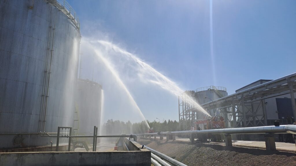 Согласно сценарию, в результате разгерметизации резервуара с дизельным топливом на территории склада жидкого топлива Якутской ГРЭС-2 произошла утечка и выброс нефтепродуктов в защитное ограждение вокруг емкости с последующим возгоранием, кроме этого среди работников станции обнаружен пострадавший.