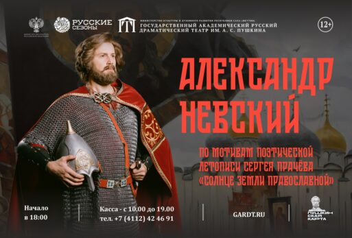 Русский театр им. А.С. Пушкина 7, 8 и 9 ноября выпускает спектакль о жизни и судьбе Александра Невского. Сшито более 80 костюмов, закуплено несколько десятков мечей для массовых боевых сцен, созданы детализированные декорации. В постановке будет занята вся труппа.