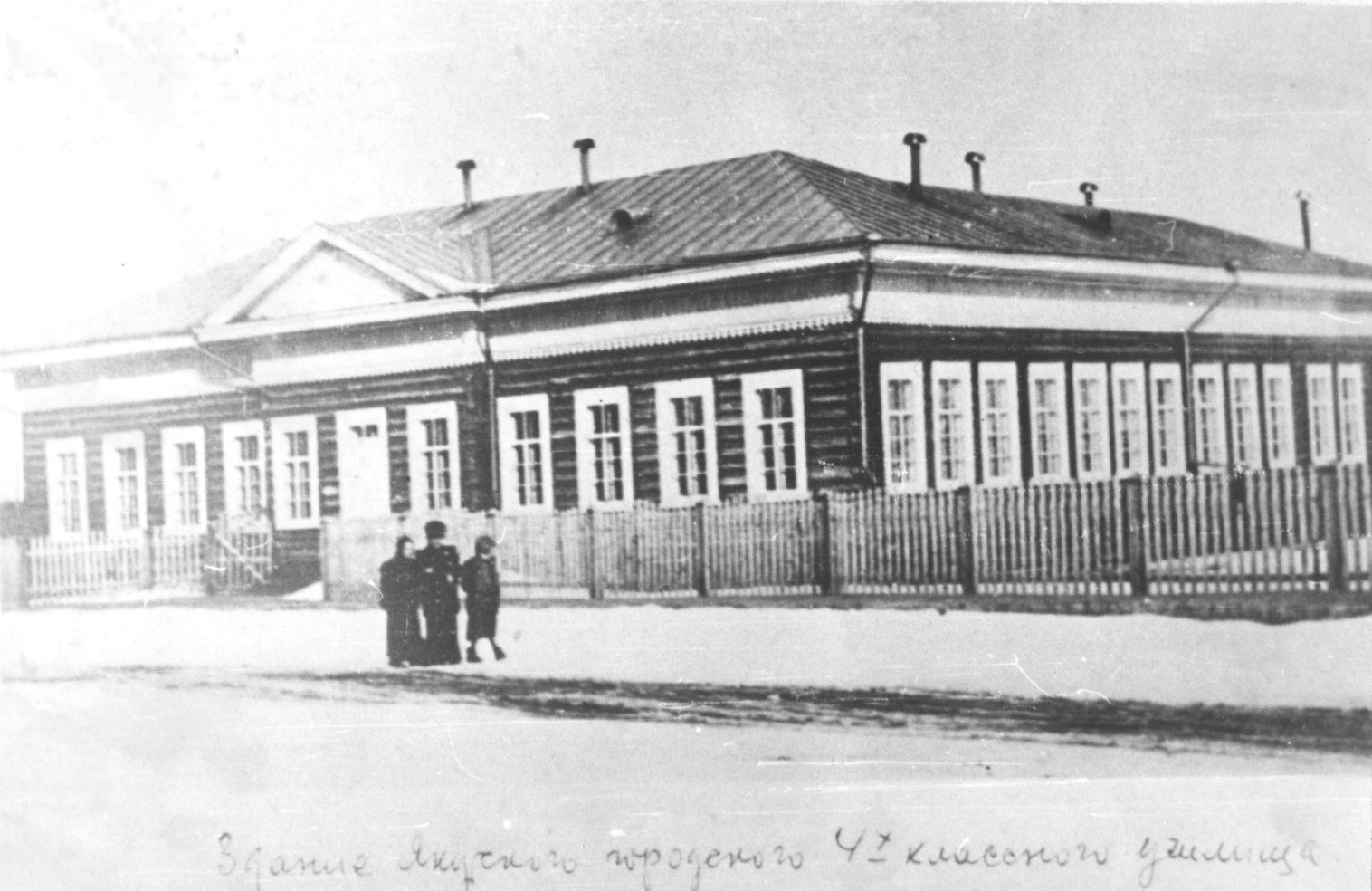 Фото 1929 года. 1 городская школа I концентра II ступени. Группа учащихся во дворе школы. Моя физиономия отмечена крестиком. Среди учащихся узнал Кершенгольца, Чугунову, Муттерперла, Зедгенизова, учителей Муксунова, Иннокентия Зедгенизова (по физкультуре) и по-моему справа стоит учитель якутского языка Моруо(аннотация Е.К. Суровецкого).