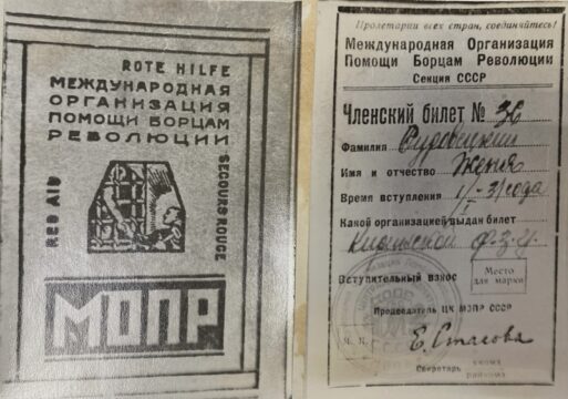 Членский билет Международной Организации Помощи Борцам Революции Е.К. Суровецкого.