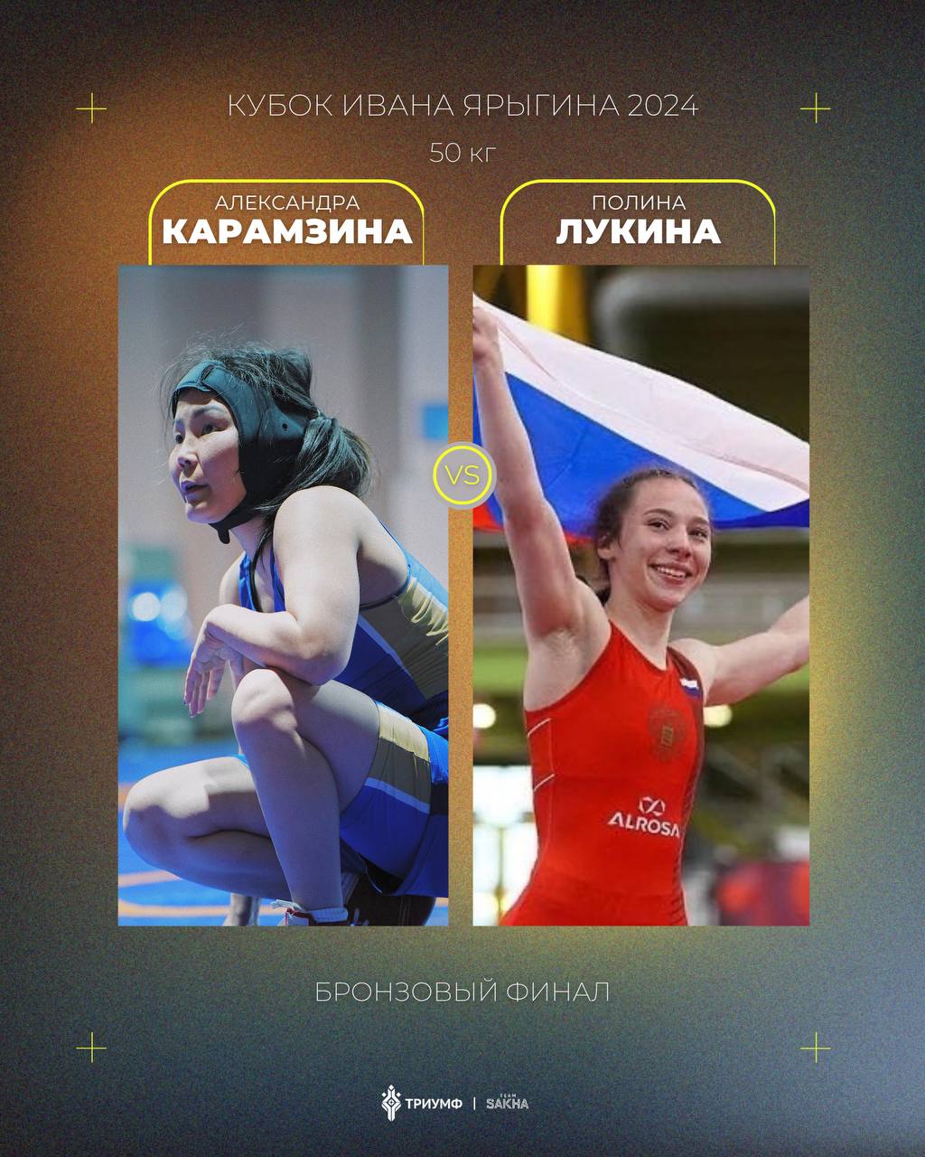 На борьбу за бронзовые награды выйдут 5 якутских спортсменов. Первыми медали оспорят женщины в наилегчайшей в/к 50 кг: нашей Александре Карамзиной предстоит бороться с чемпионкой России 2023 Полиной Лукиной