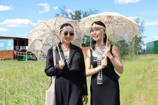 Егор и Прасковья Борисовы, а также главы районов Якутии на Ысыахе Туймаады. Фото тгк Якутия-24