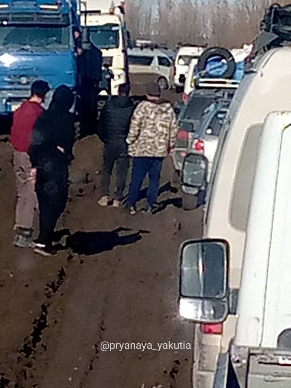 Переправа Хатассы-Павловск. Грязь, пузотерки не могут проехать. Не суйтесь, предупреждает подписчик тгк @pryanaya_yakutia
