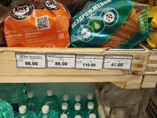 Вчера сообщалось, что во многих магазинах Якутска нет хлеба. Сегодня с утра в якутском Телеграме сообщали, что хлеб подорожал — широко публиковалось фото буханки с ценником 121 рубль…