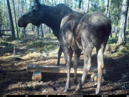 По словам госинспектора отдела территорий национального парка «Ленские столбы» Романа Широких, лосиху сопровождал прошлогодний лосёнок, они вместе покормились на солонце.