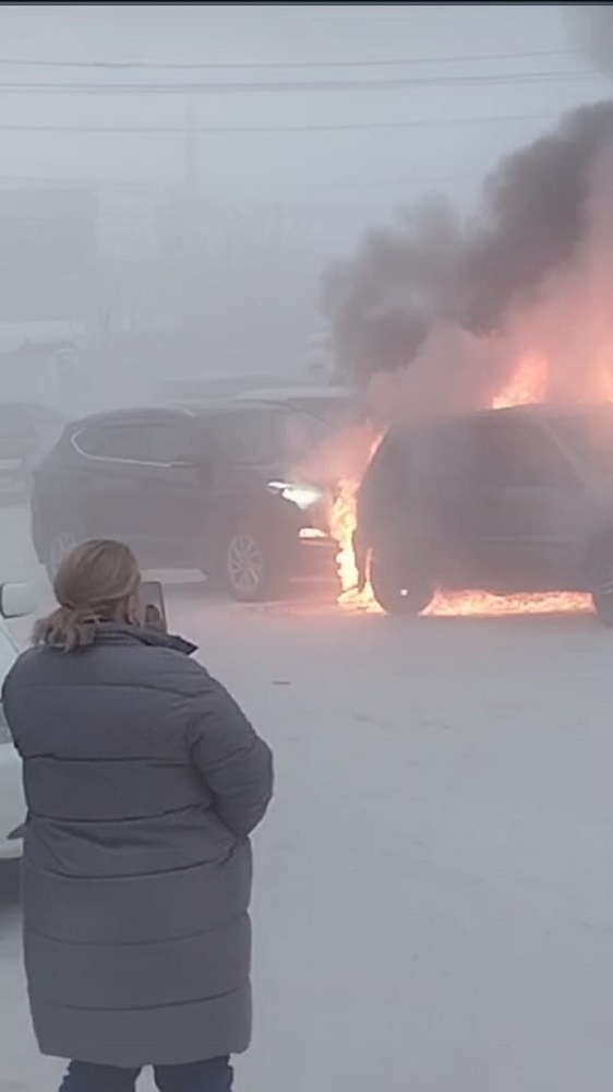 Где огнетушители?!! В Якутске заполыхали сразу 2 автомашины