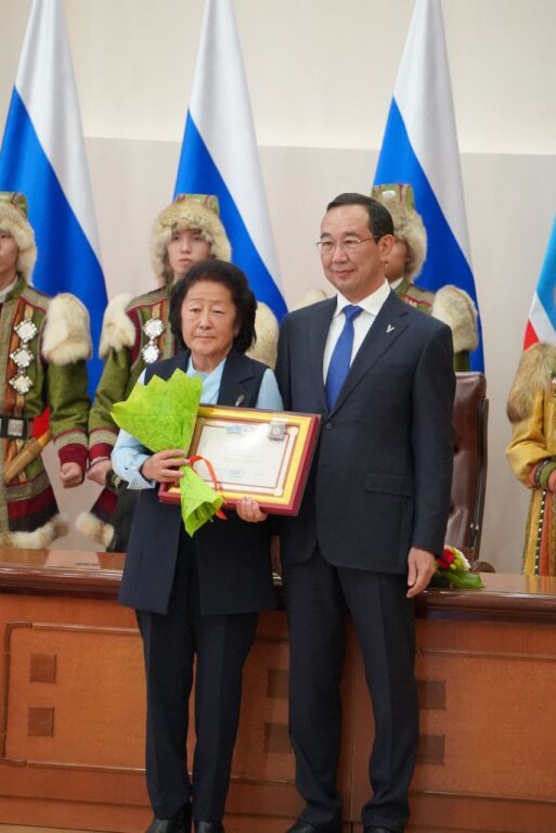 В преддверии Дня государственности Республики Саха (Якутия) Сара Степичева, опытнейший работник АО «Теплоэнергосервис» (дочернее общество Якутскэнерго, входит в Группу РусГидро), удостоена почетной грамоты от Главы Республики Саха (Якутия) Айсена Николаева за вклад в социально-экономическое развитие республики и многолетний добросовестный труд.