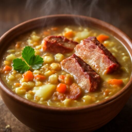 Этот гороховый суп с копченостями — отличный вариант сытного и ароматного блюда, которое порадует всю семью. Простое приготовление и насыщенный вкус делают его идеальным для уютных домашних обедов в холодное время года. Приятного аппетита!