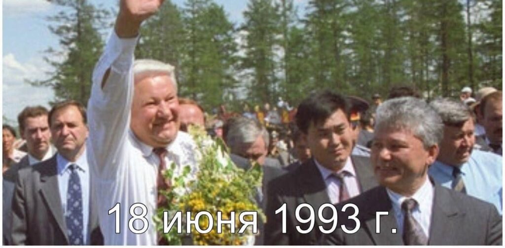 18 июня 1993 года первый президент России Борис ЕЛЬЦИН приехал в Якутию с дружеским визитом при первом президенте республики Михаиле НИКОЛАЕВЕ. Президенту России показали Таттинский ысыах, посвященный 100-летию со дня рождения П.А. Ойунского.