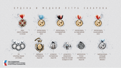 Справка: Купец 2 гильдии Петр Илларионович Захаров за благотворительность и пожертвования в пользу образования и православных церквей города Якутска, своих земляков в неурожайные годы, финансирование научных экспедиций, направленных на этнографические и географические исследования родного края и соседних регионов, а также поддержку и гуманизацию пенитенциарной системы был награжден 12 отечественными и иностранными орденами и медалями.