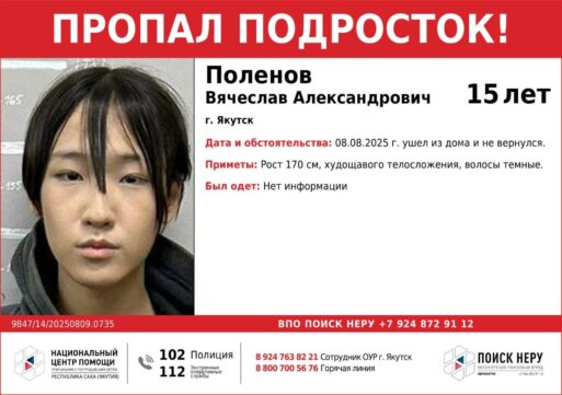 Неизвестна судьба третьего подростка Поленова Вячеслава Александровича, 15 лет. 8 августа он ушел из дома и не вернулся. Рост 170 см, худощавого телосложения, волосы темные. Во что был одет — неизвестно.