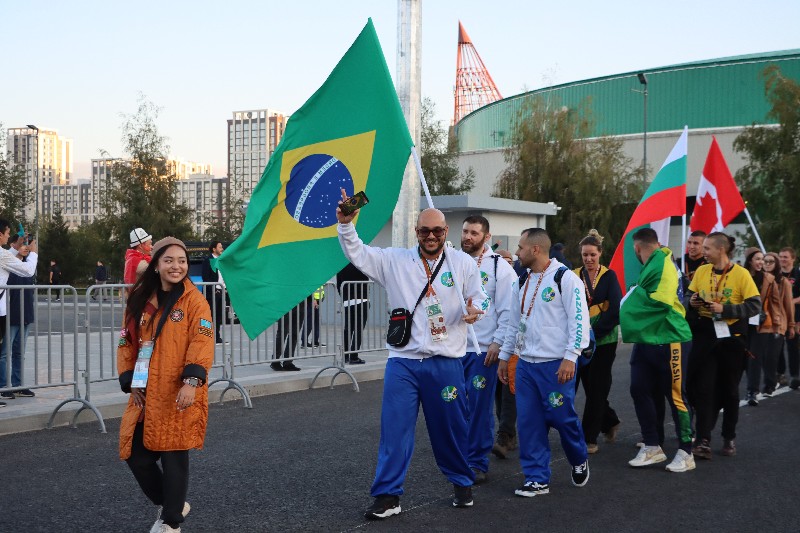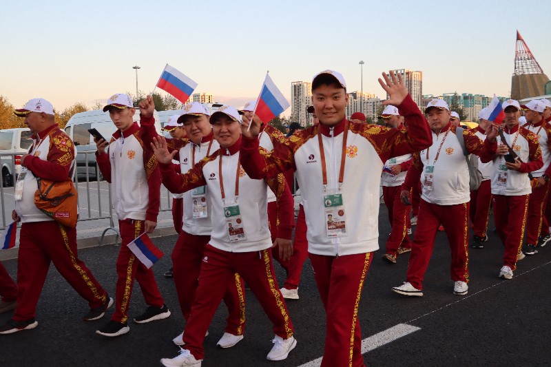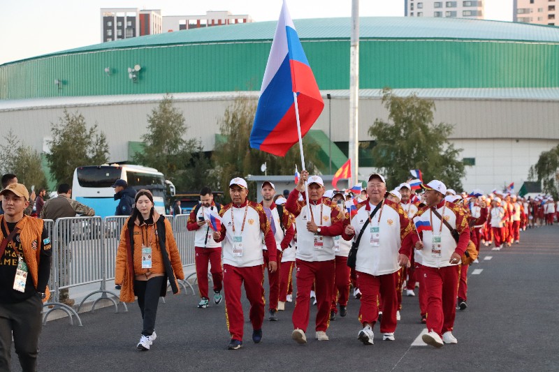 Вчера состоялось открытие Игр. Участников собрали с 16 часов в “Алау”, сформировали колонны по латинскому алфавиту. Первой оказалась колонна Кыргызстана. Что вызвало недоумение у несведущих людей – как так? Поясню – команда кыргызских спортсменов открывает парад в знак уважения к основоположникам Игр. Далее выстроились действительно по алфавиту. И должны были пройти пешком менее километра до огромного дворца спорта “Астана Арена”. В итоге мы попали под ее сверкающие своды через три с половиной часа. И прошли торжественным маршем. Кстати единую команду нашей страны из 150 членов возглавлял и нес в руках флаг великой страны наш коллега, Михаил Ершов, член исполкома Комитета национальных и неолимпийских видов спорта России, председатель комиссии по развитию национальных видов спорта КННВС. Это знак особого доверия и высокой оценки роли и места нашей республики и ее национальных видов спорта в российском этноспорте.