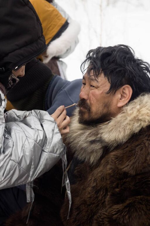Сложно пришлось в сцене в стойбище эвенов. Поскольку трудно найти среди эвенов актеров, нам пришлось взять якутских актеров и под контролем обладателей языка они вынуждены были заговорить по-эвенски. Здесь большое спасибо Варваре Григорьевне Белолюбской, за ее консультации и содействие.