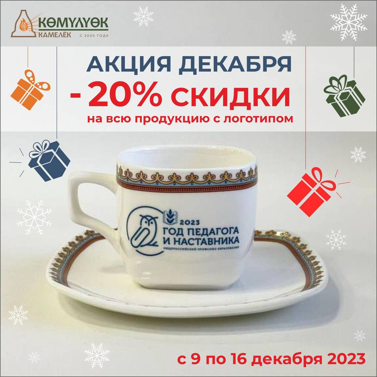 Компания «Камелёк» предлагает вам фирменную продукцию из фарфора с логотипом Года труда со скидкой 20% для розничных покупателей и 30% для оптовых покупателей только до конца следующей недели! Также по вашему желанию есть возможность нанесения золотой гравировки. Спешите сделать ваш заказ, поздравить трудовые коллективы и сделать итоги уходящего 2023года! Ждем вас в наших фирменных магазинах: ТЦ АЙСБЕРГ, 2 этаж ул. Орджоникидзе 56 Для заказа подарков звоните и пишите нам: +7 967 914-69-06