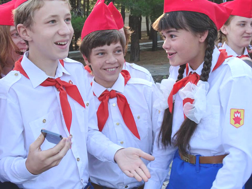 Последние с раннего утра трубили и барабанили сигналы “Сбор”, “На линейку”, “Торжественная встреча”, “Вынос знамени”. И все действо так красиво смотрелось еще и потому, что мы все были одеты в новенькую одинаковую форму — белоснежные рубашки с красными эмблемами на рукаве, синие шортики, пилотки, красные галстуки, белые гольфы. А горнисты и барабанщики еще носили белые перчатки. Тем самым нам, детям из 15 союзных республик, внушали, что мы все — равны!