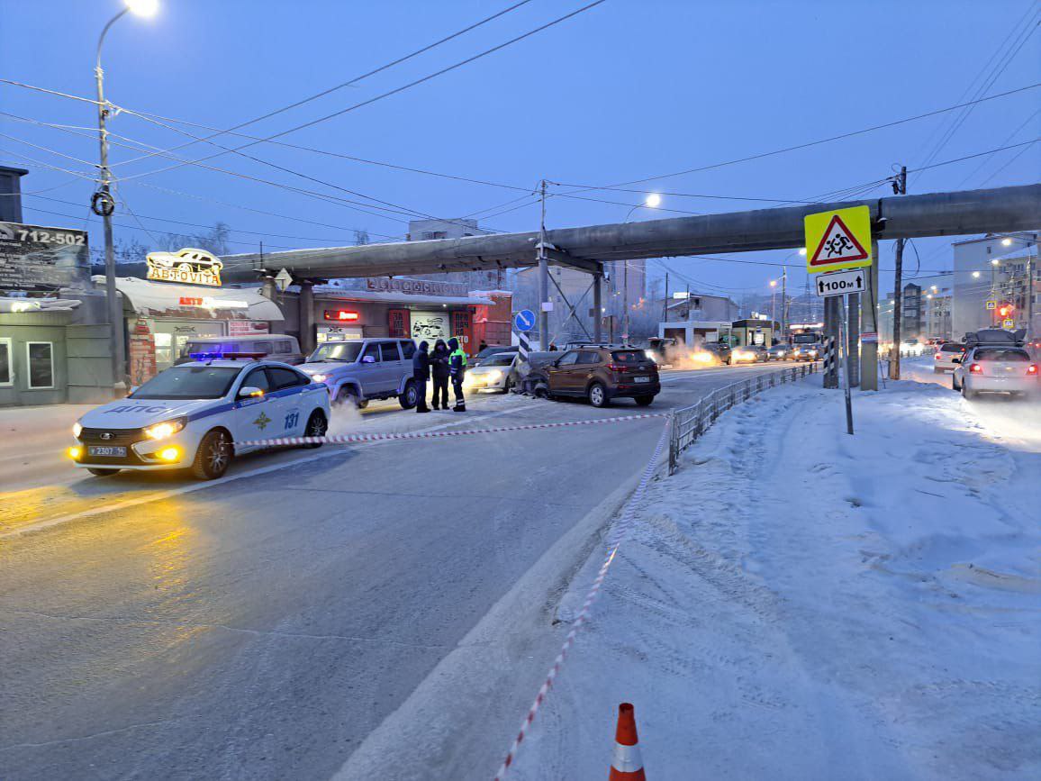 Крупная авария на Стадухина. Хюндай Крета врезалась в опору компенсатора. Движение затруднено. Ждем официальной информации.