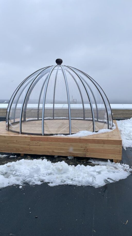 Уже через 17 дней после собрания, 20 июня, на крыше дома по ул. Ждамирова, 1 начали принимать гостей. По договору аренды между ООО «МДЗ» и индивидуальным предпринимателем ЕВСЕЕВЫМ на мягкой кровле появился прозрачный купол вместимостью до шести человек, в соцсетях его презентовали как «свидание на крыше города». Жильцы настаивали: дамы на свидание пойдут на каблучках и, следовательно, оставят неизгладимые следы на мягкой кровле. Предприниматель Евсеев получил в аренду лишь 13 квадратных метров крыши. Но по факту она вся в распоряжении гостей.