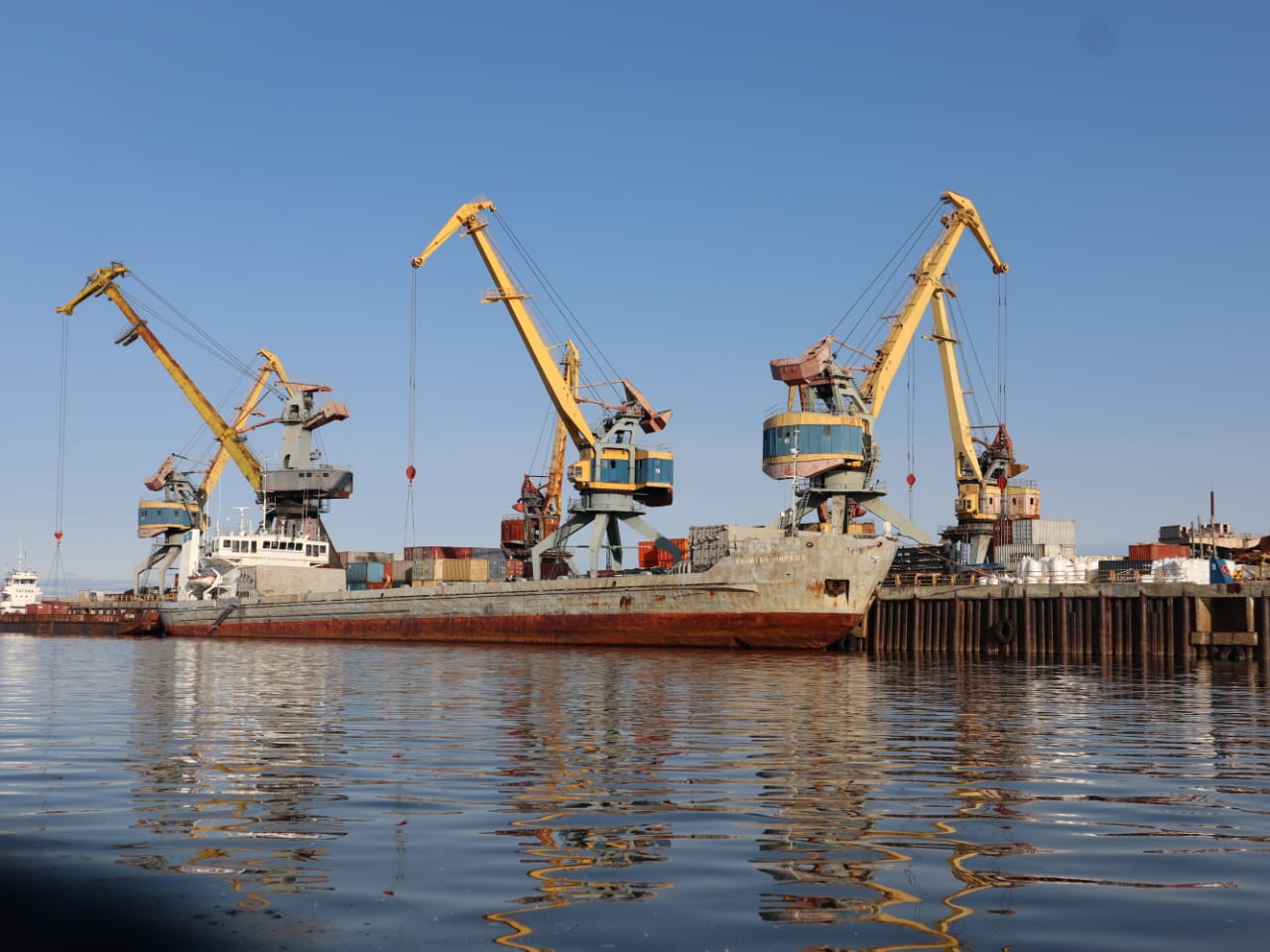 На причале «Якутск» (на Даркылахе) теплоход «Святитель Иннокентий» загружается генеральными грузами назначением на Юрюнг-Хая. «Сибирский» доставил по Северному морскому пути каменный уголь до Нижнеянска. Ответственно руководит экипажем капитан Николай Серин: «После доставки грузов в Юрюнг-Хая, нам предстоит вернуться в западный сектор Арктики, экипаж добросовестно трудится, идет погрузка техники в Якутске», — рассказал по телефону капитан Н.Серин.