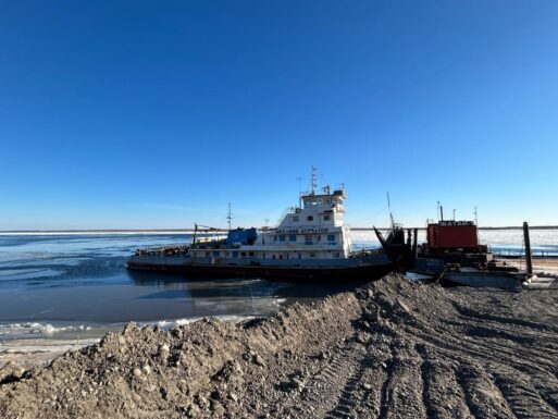 После формирования ледового покрова на реке силами ледокола будет пробит канал для возможности судоходства и дальнейшего продолжения рейсов.