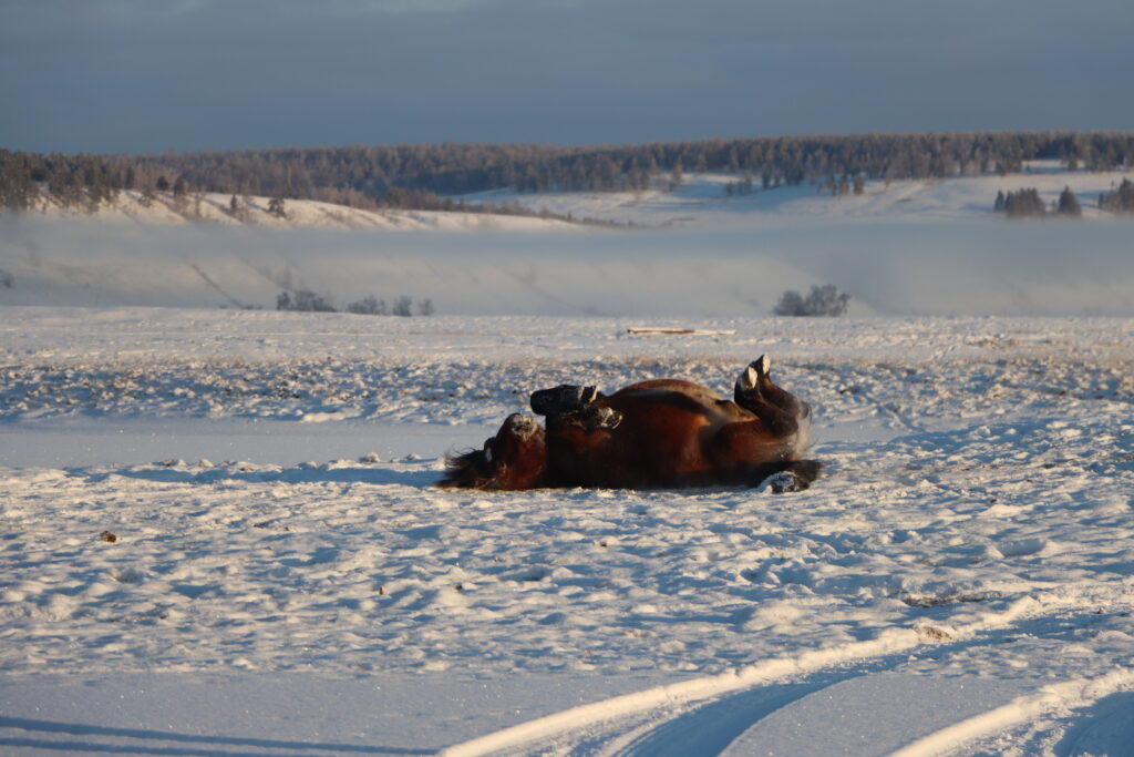 Лошадь, радующаяся теплу: Всего -8° — разве это не повод