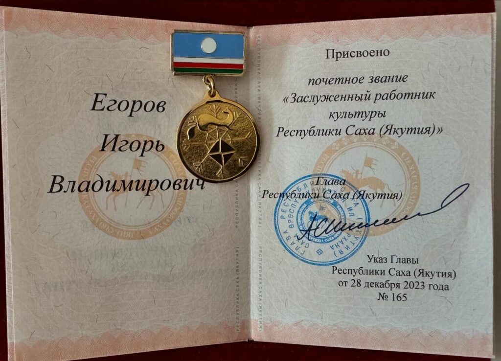 Игорь Егоров: Дойдум дьонугар ис-сүрэхпиттэн махтанабын, 25 сыллаах айар үлэм түмүгүн сыаналаан маннык үрдүк наҕараада туттарбыккытыгар. 👍🏼🙌🏼✊🏼