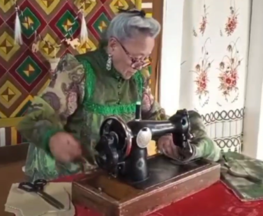 Мастерица шьет теплые носки кээнчэ для бойцов СВО