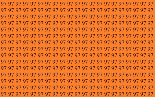 Ниже представлена картинке с рядами чисел 97 на ярком фоне. Но среди них один хитрец решил притвориться частью толпы. Это число 67 – и его нужно найти за 15 секунд! Засекайте таймер и приступайте к поиску!