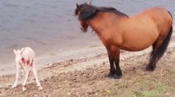 Мужчина вышел утром на пробежку, как вдруг в безлюдном месте увидел, как стая бродячих псов нападает на жеребенка. Несчастная кобылица отчаянно пыталась спасти малыша, но ей было не справиться со всеми собаками.